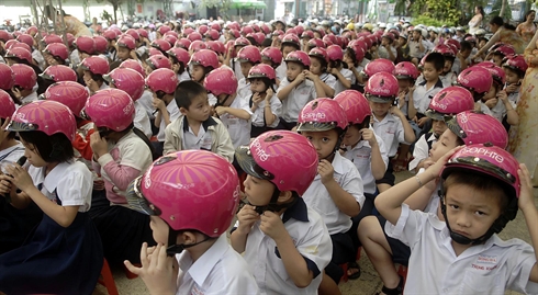 | D’ici décembre 2013, plus de 80% des enfants de Hô Chi Minh-Ville devront porter le casque sur les routes. |