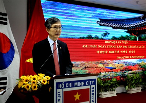 | Lim Jae-hoon, consul général de République de Corée à Hô Chi Minh-Ville, lors de la réunion en l’honneur du 4.351e anniversaire de la fondation de la République de Corée, le 18 octobre. |