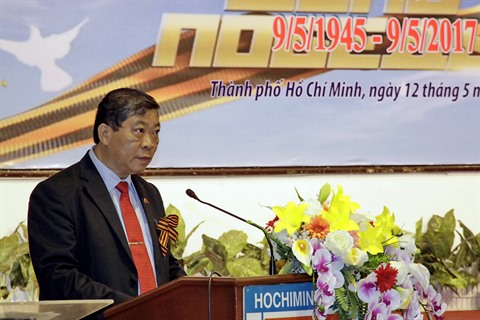 | Le président de l'Association d'amitié Vietnam - Russie de Hô Chi Minh-Ville, Hoàng Minh Nhân, lors de la cérémonie tenue le 12 mai. |
