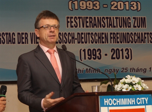 | Le consul général d'Allemagne à Hô Chi Minh-Ville, Hans Dieter Stell, lors de la célébration des 20 ans de l'Association d'amitié Vietnam-Allemagne. |