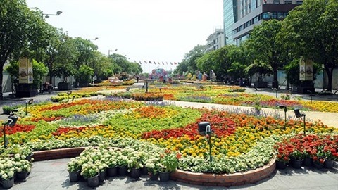 | Une vue de la rue des fleurs de Nguyên Huê, à Hô Chi Minh-Ville. |