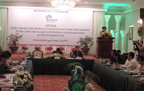 | La conférence-bilan sur le renforcement des travaux de gestion de l’environnement touristique et de garantie de la sécurité pour les touristes a eu lieu le 23 décembre à Hô Chi Minh-Ville. |