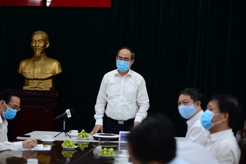 | Nguyên Thiên Nhân s'exprime lors d'une séance de travail avec le Service municipal de l’information et de la communication, le 14 avril à Hô Chi Minh-Ville. |