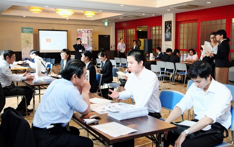 | La rencontre entre les stagiaires et étudiants vietnamiens avec les entreprises japonaises de la province de Saitama en août 2016. |