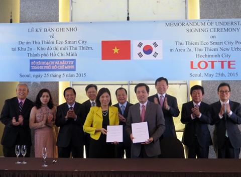 | Cérémonie de signature d'un mémorandum de coopération entre le groupe sud-coréen Lotte et le Service du plan et de l'investissement de Hô Chi Minh-Ville, le 25 mai à Séoul. |