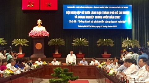 | Rencontre entre les autorités municipales et les entreprises nationales pour l’année 2017, le 7 mars à Hô Chi Minh-Ville. |