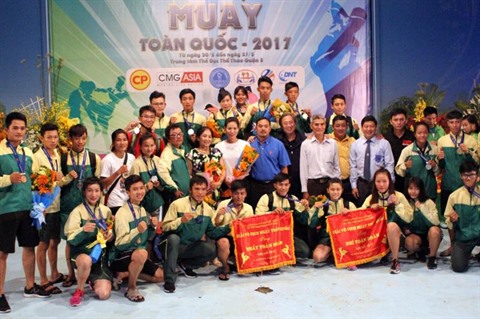 | L’équipe de Hô Chi Minh-Ville savoure son succès lors de la cérémonie de remise des prix de Muay. |