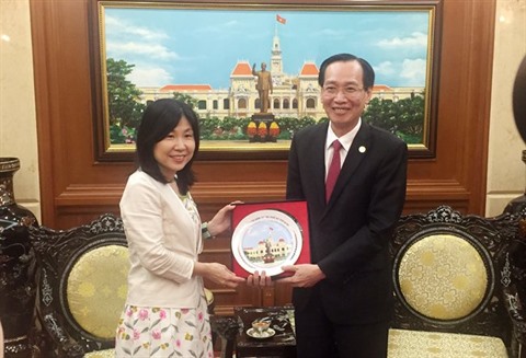 | Lê Thanh Liêm, vice-président permanent du Comité populaire municipal de Hô Chi Minh-Ville, a reçu le 22 février, Mme Emiko Hazama, vice-gouverneur de la ville de Sakai (Japon). |