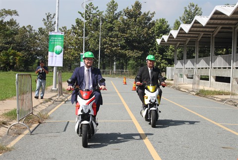 | Les motos électriques de Bosch à titre expérimental dans la province de Binh Duong. |
