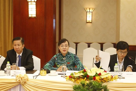 | La présidente du Conseil populaire de Hô Chi Minh-Ville, Nguyên Thi Quyêt Tâm prend la parole lors de la séance de travail le 25 septembre avec la délégation de haut rang du Conseil populaire de Champasak. |
