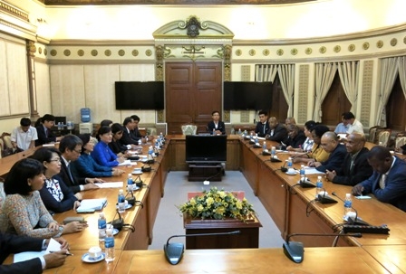 À cette occasion, Nguyên Thi Quyêt Tâm a présenté à son interlocutrice la situation socio-économique et l'organisation administrative de la mégapole du Sud. De même, elle a estimé que la visite de la délégation de haut rang du Conseil municipal de Johannesburg contribuerait à promouvoir la coopération entre le Vietnam et l’Afrique du Sud.