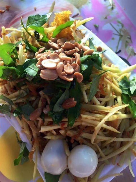 L’après-midi, rue An Dương Vương dans le 5e arrondissement, il y a des dizaines de carioles avec du charbon de bois rougi. C’est le temps de déguster quelques pieuvres grillées et leur sauce shacha, qui répandent une forte odeur dans toute la rue. Ce plat est d’une telle simplicité. Chaque part coûte environ 50. 000 dôngs, un prix raisonnable pour un plat savoureux.