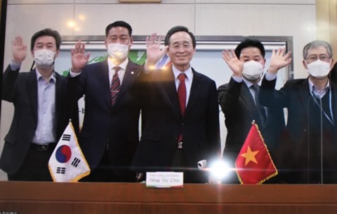 | Les autorités de la province sud-coréenne de Jeollabuk saluent leurs homologues de Hô Chi Minh-Ville lors de leur session de travail en ligne. |