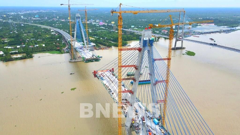 | Selon les prévisions, le pont de My Thuân 2, reliant les provinces de Tiên Giang et Vinh Long, dans le delta du Mékong, sera mis en service à la fin de cette année. |