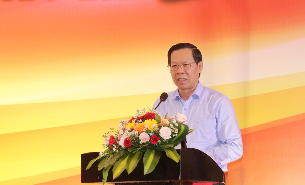| Le président du Comité populaire de Hô Chi Minh-Ville, Phan Van Mai, s'exprime lors de la conférence du 21 juillet à Cân Tho (delta du Mékong). |