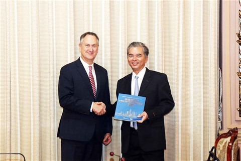 | Le vice-président du Comité populaire de Hô Chi Minh-Ville, Ngô Minh Châu (droite), et le président régional de VISA pour l’Asie-Pacifique, |