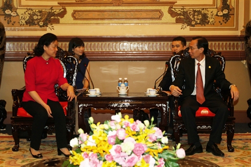 | Le vice-président du Comité populaire de Hô Chi Minh-Ville, Lê Thanh Liêm, et le vice-gouverneur du Guangdong, Mme Zhao Yufang, le 10 décembre à Hô Chi Minh-Ville |
