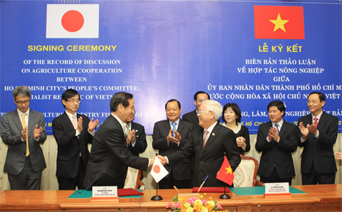 À cette occasion, le Comité populaire municipal et le ministère japonais de l'Agriculture, de la Forêt et de la Pêche ont signé le procès-verbal de leurs discussions sur la coopération dans l’agriculture et l'agroalimentaire. Hô Chi Minh-Ville s’intéresse à l’augmentation du rendement et de la qualité de ses cultures, à la sélection de variétés animales, végétales et florales, afin que ses produits agricoles soient de haute qualité et répondent aux normes japonaises.