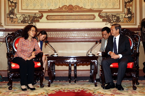 | Le vice-président du Comité populaire de Hô Chi Minh-Ville, Lê Van Khoa, et Mme le vice-gouveneur de la province Yunnan, Li Jiang, le 10 mai à Hô Chi Minh-Ville. |