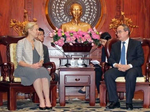 | Le secrétaire du Comité du Parti de Hô Chi Minh-Ville, Nguyên Thiên Nhân, et la ministre néerlandaise du Commerce extérieur et de la Coopération au développement, Sigrid Kaag, le 7 février. |