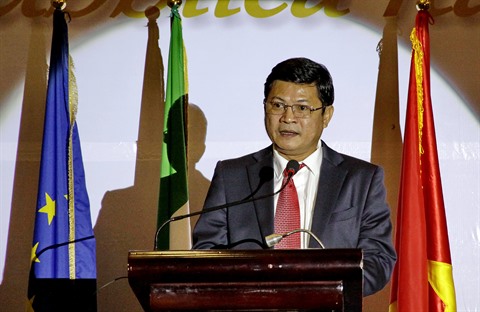 | Le vice-président du Comité populaire de Hô Chi Minh-Ville, Huynh Cach Mang, lors de la célébration de la 71e Fête nationale de la République italienne. |
