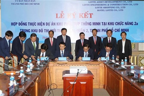 Il a salué le fait que Lotte avait choisi Hô Chi Minh-Ville pour mettre en œuvre plusieurs grands projets dont la construction de la ville éco-intelligente. Il a aussi souligné des engagements forts en matière d'investissement de Lotte à travers la signature d'un pacte de location de terrains pour la ville éco-intelligente dans la zone urbaine de Thu Thiêm, d'une valeur de 2.000 milliards de dôngs (88 millions de dollars).
