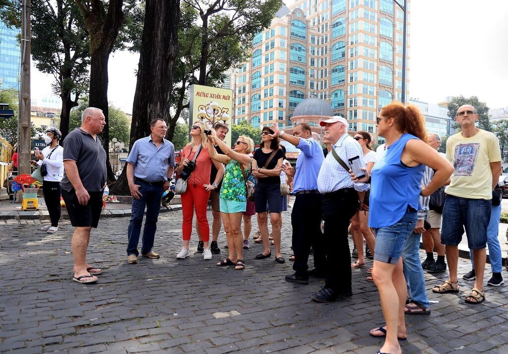| Des touristes étrangers à Hô Chi Minh-Ville. |