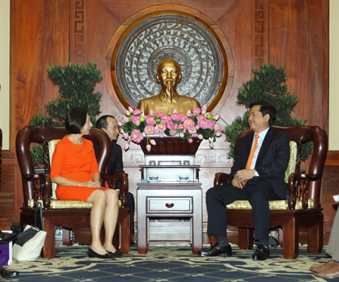 Dinh La Thang, membre du Bureau politique et secrétaire du Comité municipal du Parti de Hô Chi Minh-Ville, a reçu le 29 février une délégation de dirigeants de la société singapourienne Temasek Holdings, conduite par sa directrice chargée des Affaires publiques et des Stratégies, Cheo Hock Kuan.