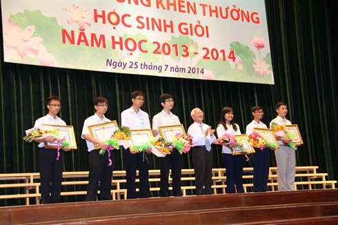 Parmi les lauréats glorifiés, huit élèves qui ont gagné des prix internationaux, dont Pham Tuân Huy, du Lycée des élèves talentueux de l’Université nationale de Hô Chi Minh-Ville, qui a ramené une médaille d'or des Olympiades internationales de mathématiques pour une deuxième fois consécutive, et Trân Phúc Duy, du Lycée Dinh Thiên Ly, le premier prix de Microsoft PowerPoint du concours mondial d’informatique 2014.