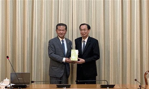| Le vice-président permanent du Comité populaire de Hô Chi Minh-Ville, Lê Thanh Liêm (droite), et Nakamura Hiro, maire de la ville japonaise de Yatsushiro, le 17 janvier à Hô Chi Minh-Ville. |