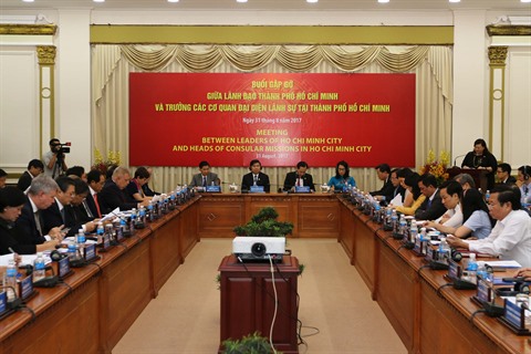| Rencontre entre les autorités de Hô Chi Minh-Ville et des consuls généraux étrangers dans la ville, le 31 août. |