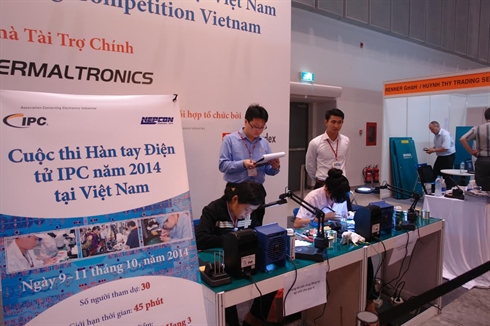 | Le tournoi de brasage manuel à l’exposition. |