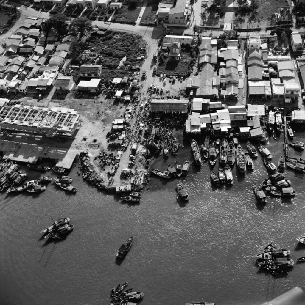 | Photo aérienne d’un port de pêche à Saïgon, en 1976. |