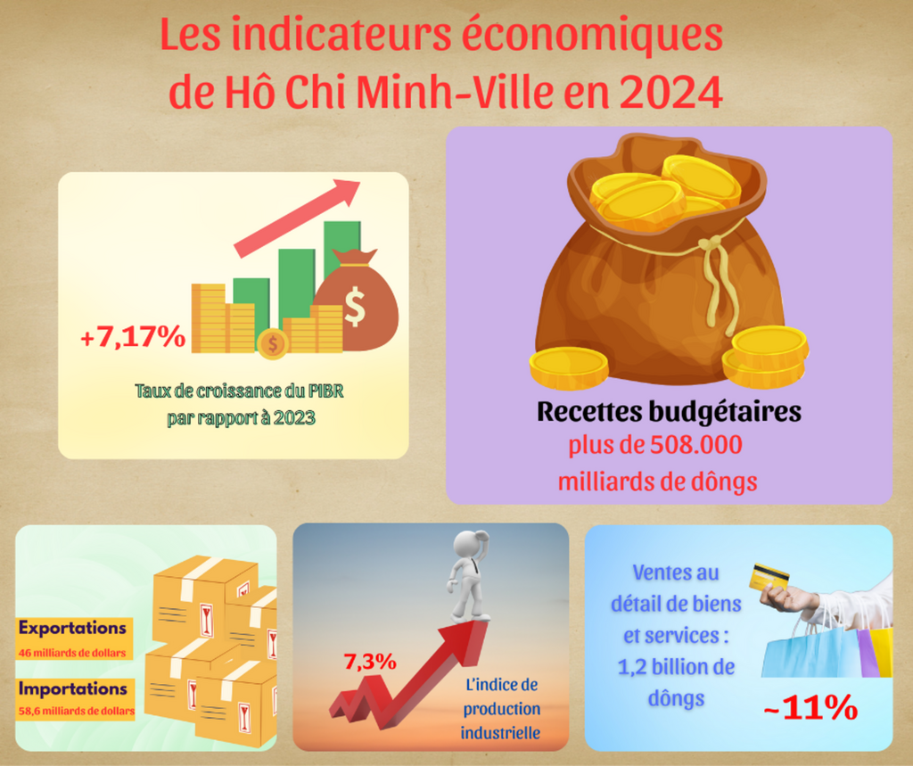 Les exportations des entreprises basées dans la mégapole du Sud se sonbt élevées à environ 46 milliards de dollars l'an passé, soit une progression de 8,3% en variation annuelle. Surtout, 2024 marque un record en matière de recettes budgétaires pour Hô Chi Minh-Ville, dépassant 508.000 milliards de dôngs, soit 105,3% des prévisions initiales et une augmentation de 13,3% par rapport à 2023.