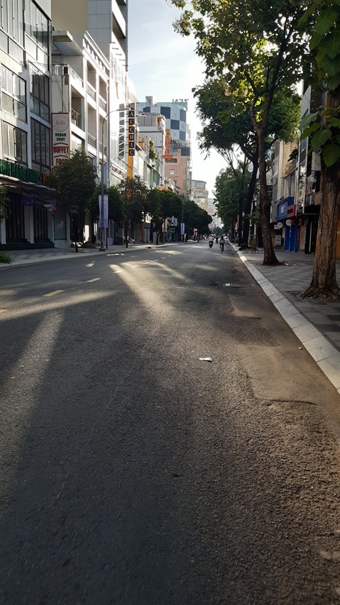 | Une rue déserte à Hô Chi Minh-Ville lors de période de distanciation sociale selon la directive 10. |