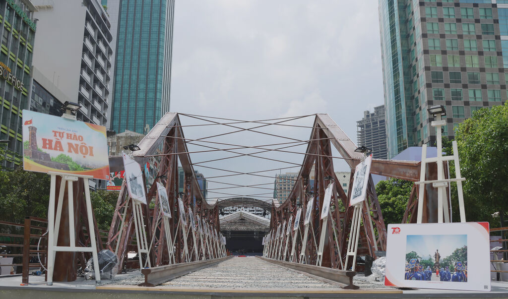 | Le pont Long Biên et l'expositions des images de Hanoï. |