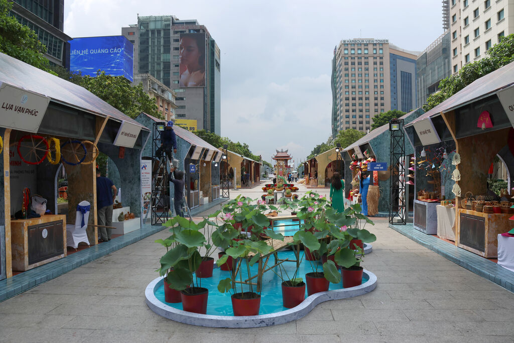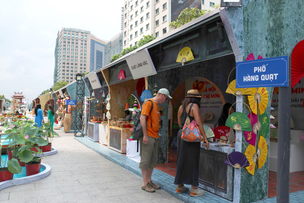 Dans la rue piétonne Nguyên Huê se trouve l'espace "Rues artisanales, villages artisanaux de Hanoï d'hier et d'aujourd'hui" avec 28 stands présentant des produits tels que céramiques de Bat Tràng, produits en bois de Son Dông, produits en bronze de Ngu Xa, soieries de Van Phuc, laques de Ha Thai, produits en bambou et rotin de Phu Vinh, libellules en bambou de Trach Xa, chapeau du village de Chuông, Tò he de Phuong Duc. Les visiteurs peuvent admirer des artisans au travail.
