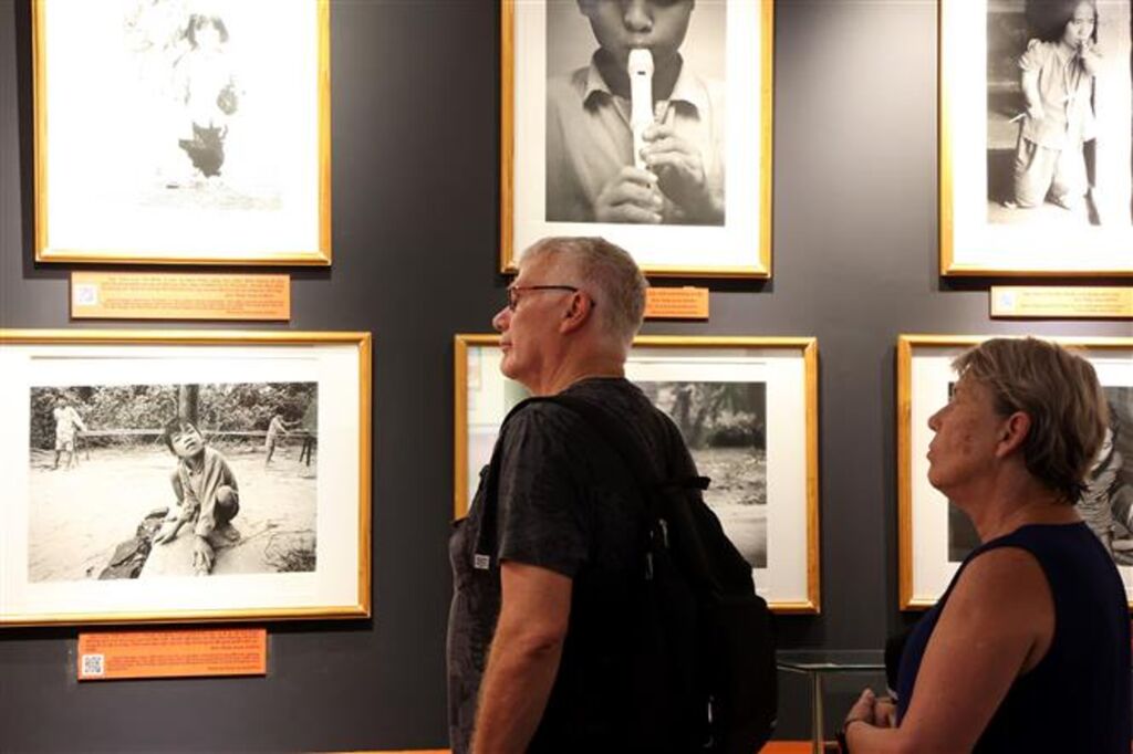 | Touristes étrangers visitant le Musée des vestiges de la guerre de Hô Chi Minh-Ville. |