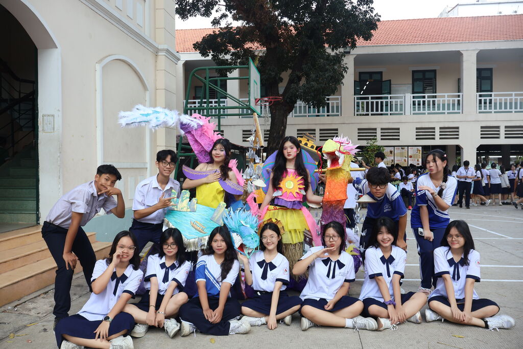 L’habileté et la créativité des lycéens ont permis l’organisation d’un défilé de mode à la valeur esthétique et historique, avec des costumes confectionnés en papier, journaux et tapis de jonc. Selon Vo Trà My, élève de première, sa classe a consacré beaucoup du temps et d’efforts à la confection d’un costume en papier inspiré de la cité impériale de Thang Long et de la baie de Ha Long. Ces lycéens ont travaillé sans relâche jusqu’à la veille du Jour J pour parfaire leur œuvre malgré la complexité de fabrication du dragon.