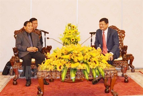 | Le vice-président du Comité populaire de Hô Chi Minh-Ville, Huynh Cach Mang (droite) et le secrétaire d'État du ministère cambodgien des Relations avec l'Assemblée nationale, du Sénat et de l’Inspection Chheng Saroeun. |