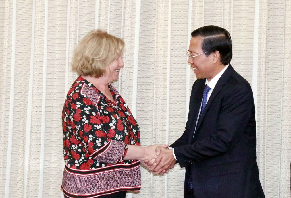 | Le président du Comité populaire de Hô Chi Minh-Ville, Phan Van Mai, et la sénatrice Catherine Deroche, présidente du Groupe interparlementaire d'amitié France - Vietnam du Sénat français. |