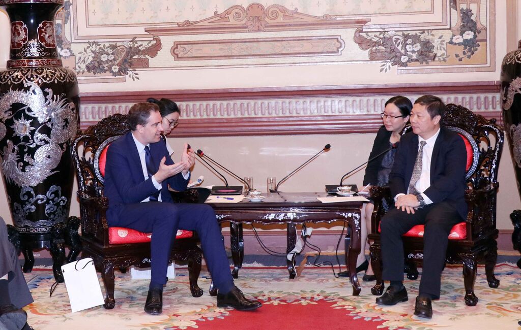 | Le ministre délégué chargé du Commerce extérieur, de l’Attractivité et des Français de l’étranger, Olivier Becht (gauche), reçu par le vice-président du Comité populaire de Hô Chi Minh-Ville, Duong Anh Duc, le 2 mars. |