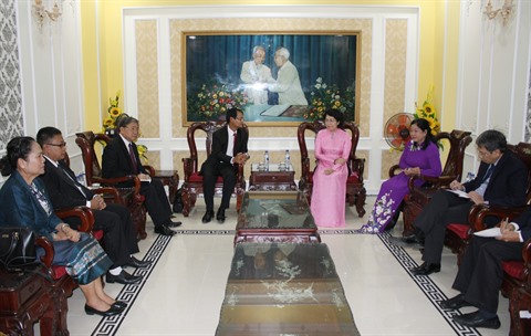 | Tô Thi Bich Châu, présidente du Comité municipal du FPV pour Hô Chi Minh-Ville, a travaillé dans la mégapole du Sud le 16 juillet avec Sithon Keophouvong, président du Comité provincial du Front d’édification nationale à Champassak. Photo :Tiên Luc/VNA/CVN |