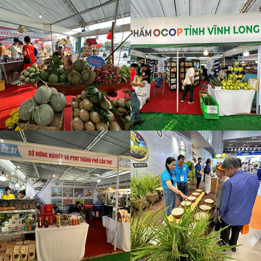 | Des produits OCOP (À chaque commune son produit) du delta du Mékong exposés lors de foires-conférences de connexion régionale dans la mégapole du Sud. |