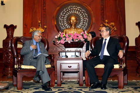 | Nguyên Thiên Nhân (droite) et Kamal Malhotra, le 29 août dans la mégapole du Sud . |
