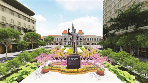 La zone autour de la statue du Président Hô Chi Minh est embellie par 36 pots de grands abricotiers, l’arbre par excellence du Têt traditionnel dans le Sud du pays.