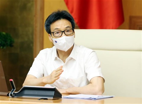 | Le vice-Premier ministre Vu Duc Dam lors d'une réunion sur la lutte contre le COVID-19 à Hanoï. |