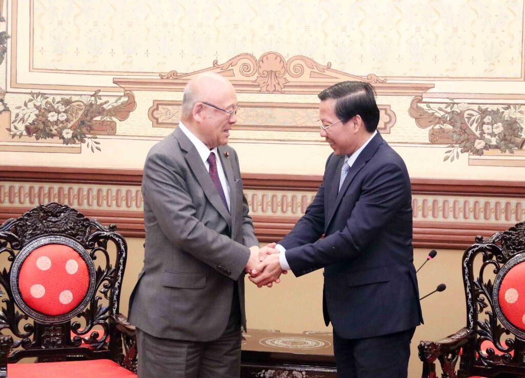 En souhaitant la bienvenue à Takebe pour la visite de la ville à l’occasion du deuxième dialogue d’amitié de Hô Chi Minh-Ville et du forum économique de Hô Chi Minh-Ville 2024, Phan Van Mai a remercié le responsable japonais pour ses contributions à l’organisation du festival Vietnam - Japon, ainsi que le gouvernement et le peuple japonais pour avoir aidé le Vietnam à surmonter les conséquences du typhon Yagi.