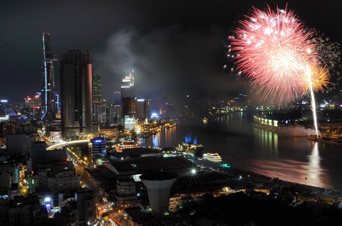 | Des feux d'artifice illuminent Hô Chi Minh-Ville. |