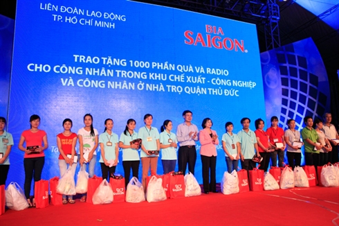 | Remise de 1.000 cadeaux et radios aux ouvriers des zones franches et zones industrielles, ainsi qu'aux ouvriers logés dans l'arrondissement de Thu Duc, le 24 juillet à Hô Chi Minh-Ville. |